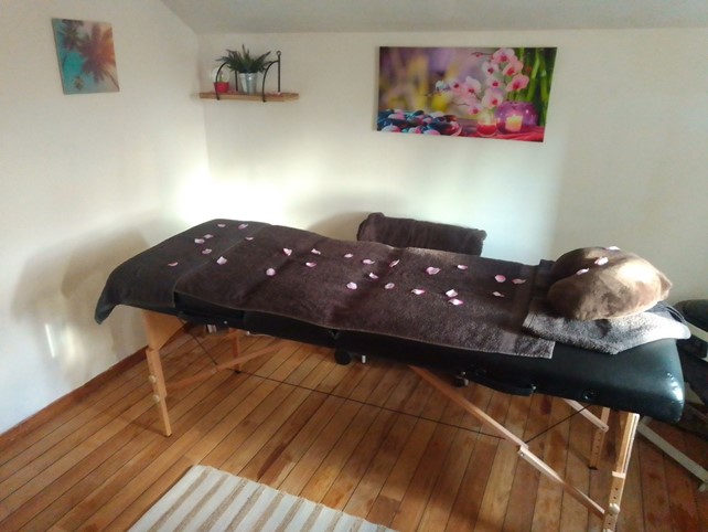 Je vous accueille également dans mon chalet en bois à Baillolet,petit nid douillet où je vous prodigue les massages à la carte: californien,pierres chaudes,ayurvédique…